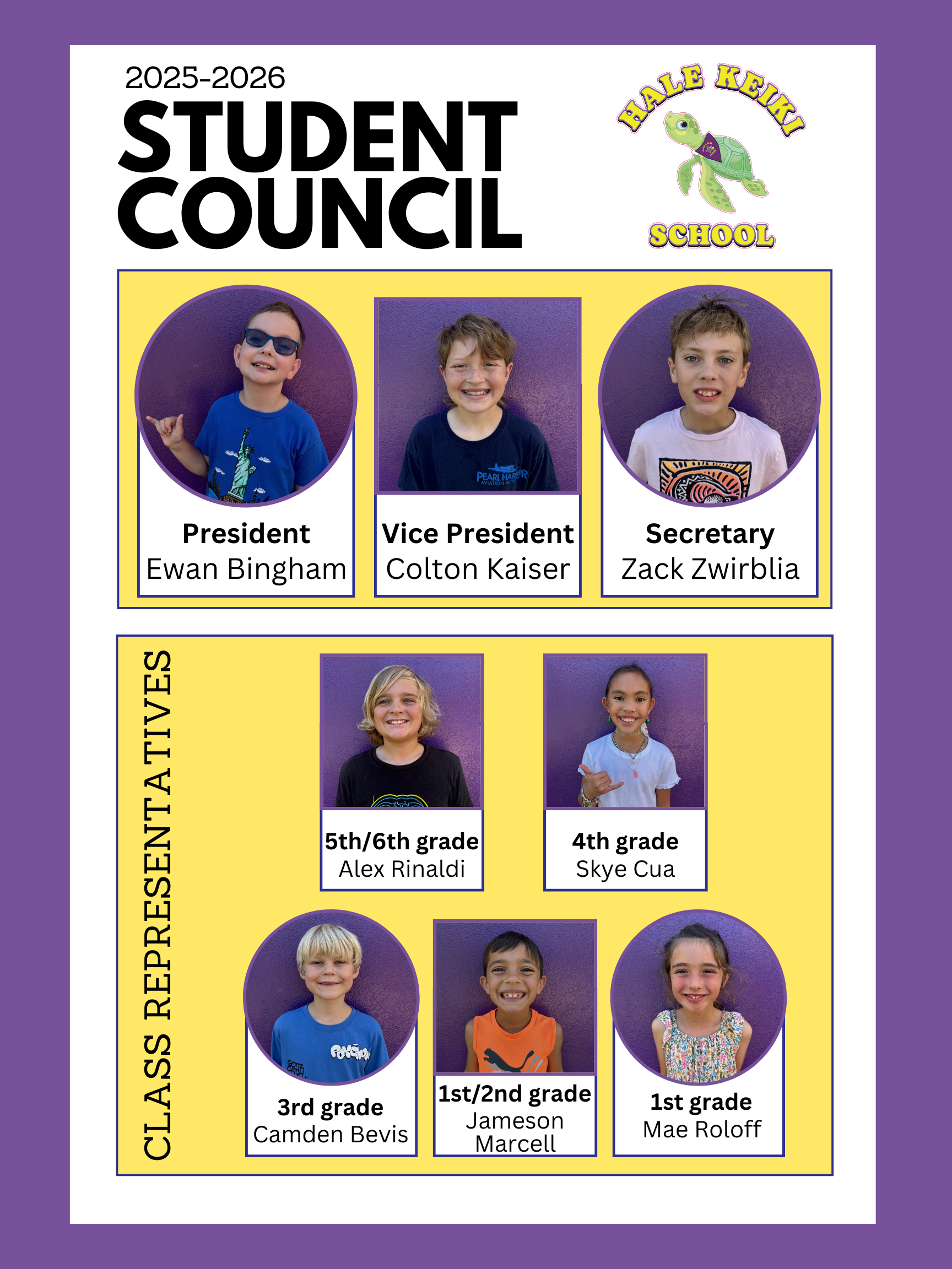 Student Council is open to grades first through sixth, with positions in each grade level. Elections are held each fall, with students in upper grades casting their vote for class representatives, secretary, vice president, and president. Student Council members are encouraged to voice their opinions about the HKS community, as well as speak up for those who are not in the council. Student Council organizes a food drive each year to collect goods for the Hawai'i Food Bank.
